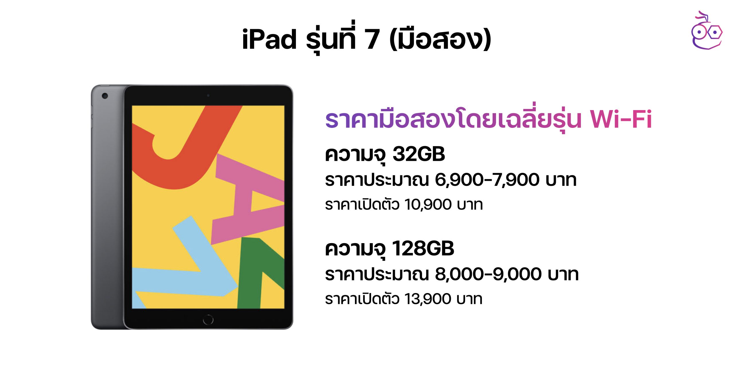 จากราคาเต็มตอนเปิดตัวรุ่น Wi-Fi ความจุ 32GB ราคา 10,900 บาท และความจุ 128GB ราคา 13,900 บาท ซึ่งราคามือสองของ iPad Gen 7th จะถูกกว่า iPad Gen 8th มือสองลงมานิดหน่อย สำหรับคนที่มีงบประมาณจำกัด เพราะเป็นรุ่นที่เก่าลงมาแล้ว