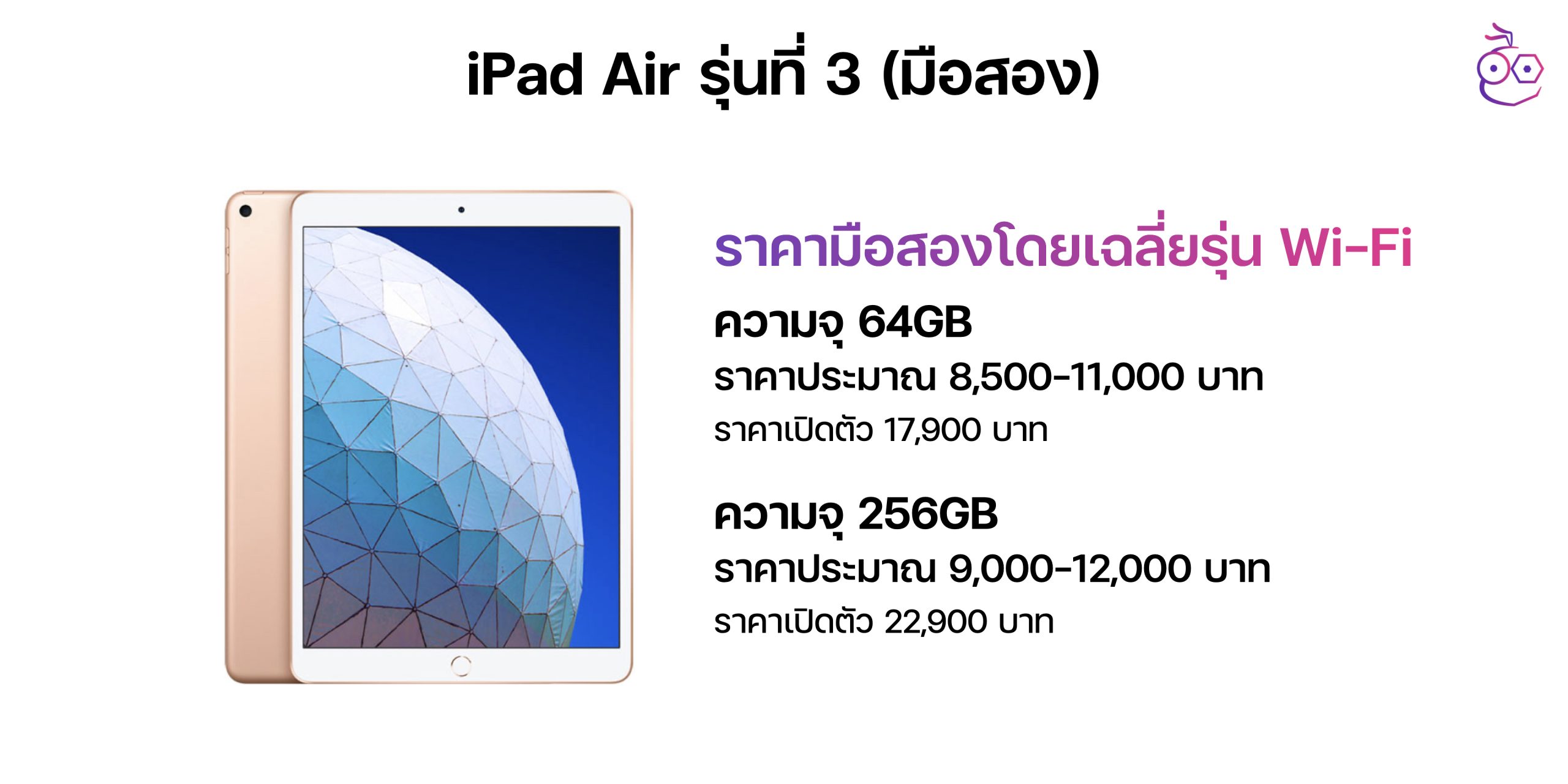 iPad Air 3 ก็ถือว่าเป็นรุ่นที่ยังมีคนใช้งานเยอะอยู่ สำหรับราคามือสองที่ขายกันตอนนี้ส่วนใหญ่จะเป็นรุ่น Wi-Fi ราคาเฉลี่ย ก็คือ