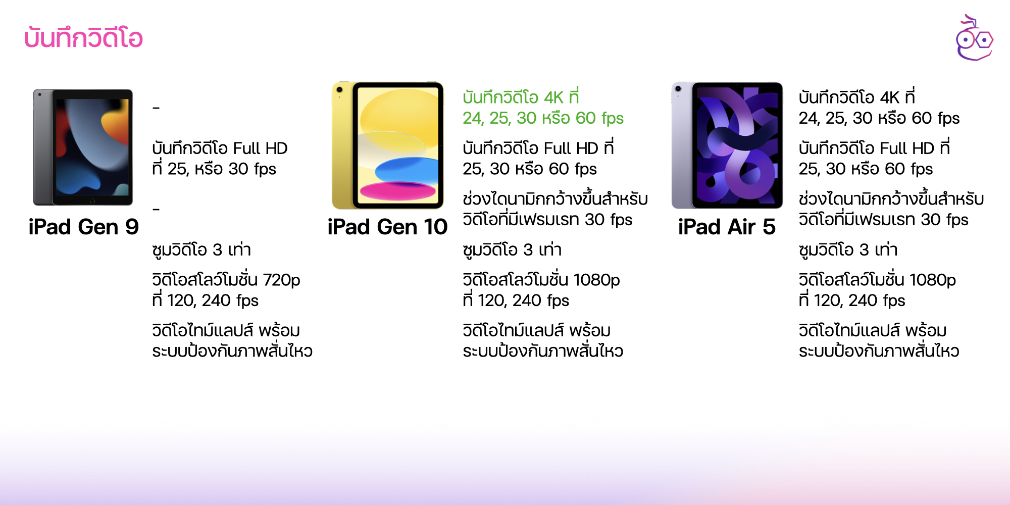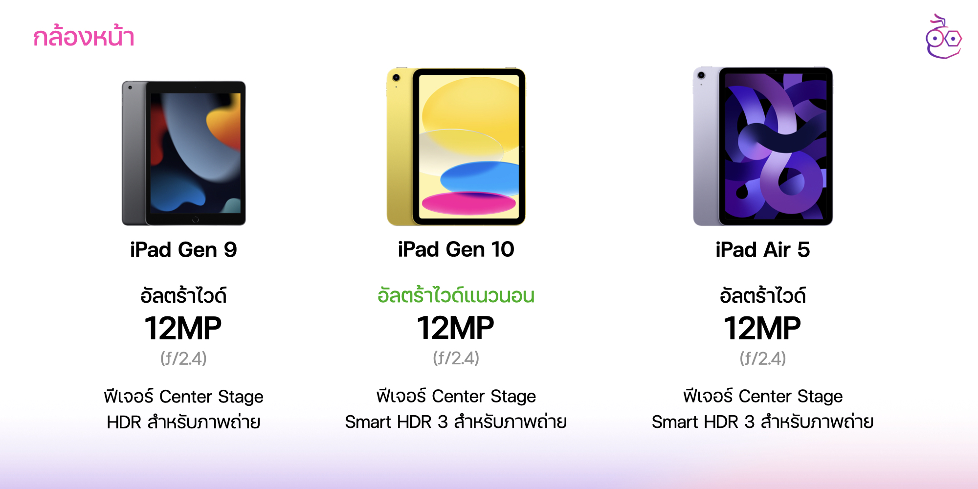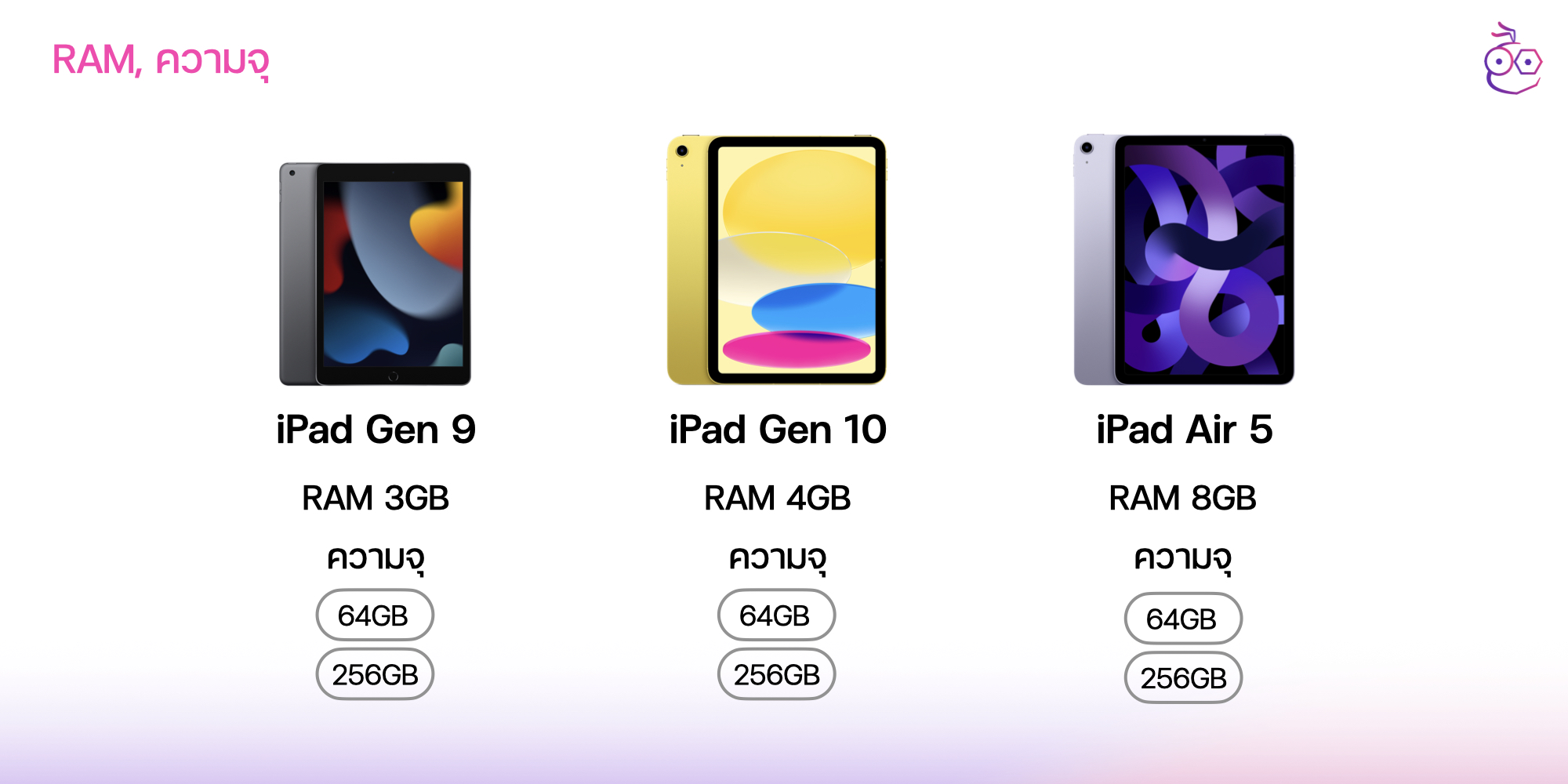 เปรียบเทียบสเปก iPad Gen 10 กับ iPad Gen 9, iPad Air 5