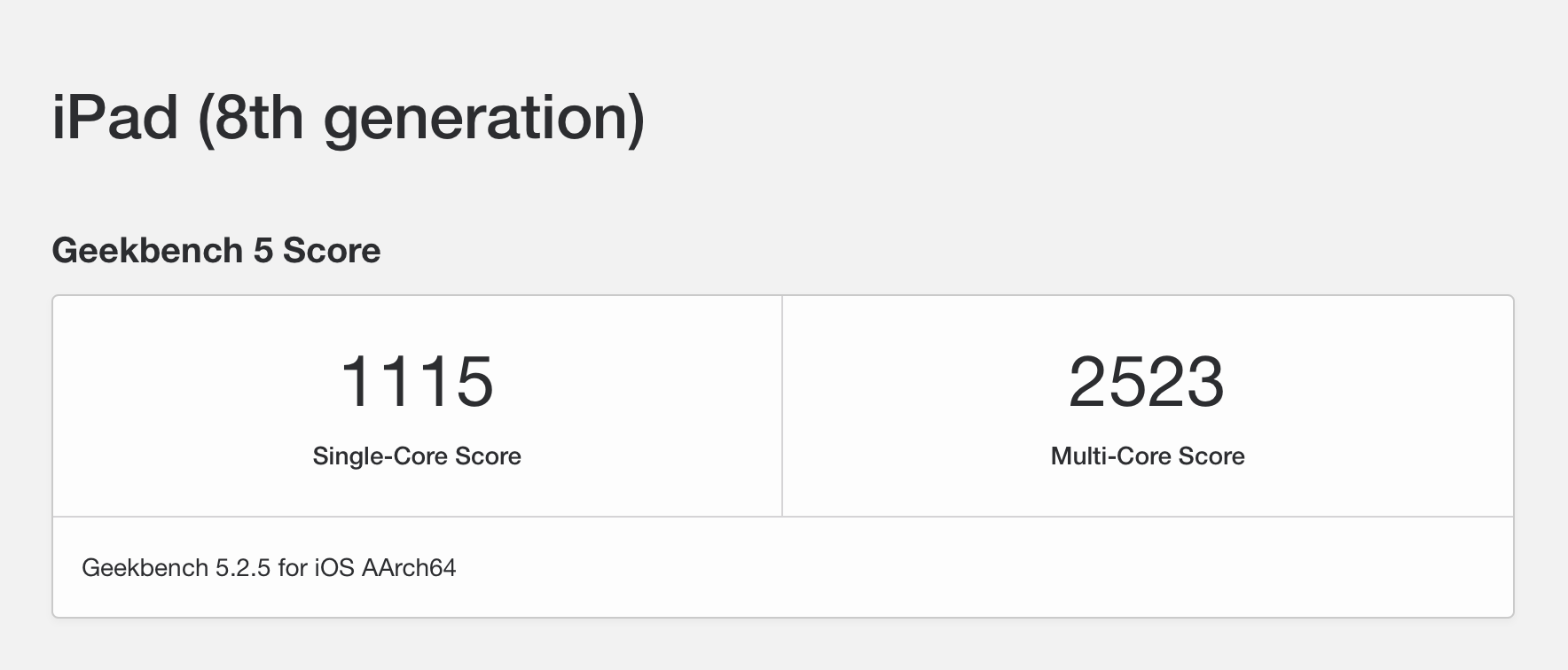เรื่องชิปประมวลผลของ iPad (รุ่นที่ 8) เป็นไฮไลท์สำคัญเลย เพราะใช้ชิป A12 Bionic แบบเดียวกับ iPhone XS และ iPad mini 5, iPad Air 3 ซึ่งมอบประสิทธิภาพให้กับตัวเครื่องเป็นอย่างมาก โดยสเปกด้านประสิทธิภาพของชิป A12 Bionic มีดังนี้