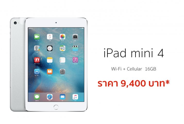 ราคา iPad mini 4 16GB ไม่ถึงหมื่น (ย้ายค่ายเบอร์เดิม) แค่ 9,400 บาท เท่านั้น
