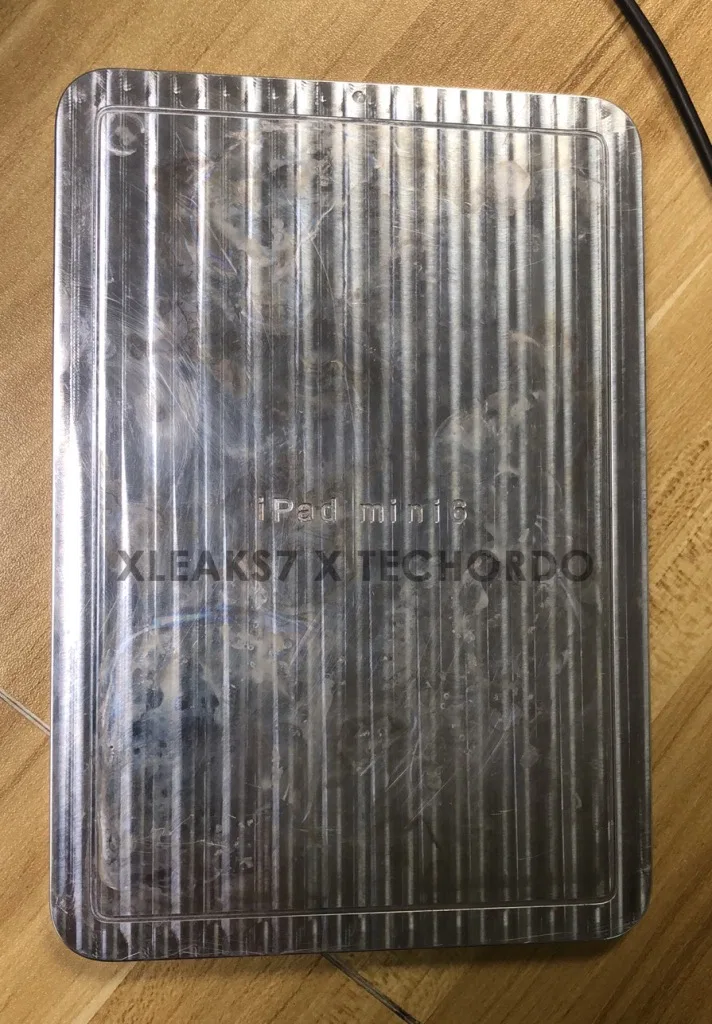 ในภาพแม่แบบ iPad mini 6 จะเห็นได้ว่าตัวเครื่องใช้ดีไซน์เหมือน iPad Air 4 แต่ขอบหน้าจอหนากว่า ซึ่งอาจเป็นเพราะตัวเครื่องมีขนาดเล็กกว่า