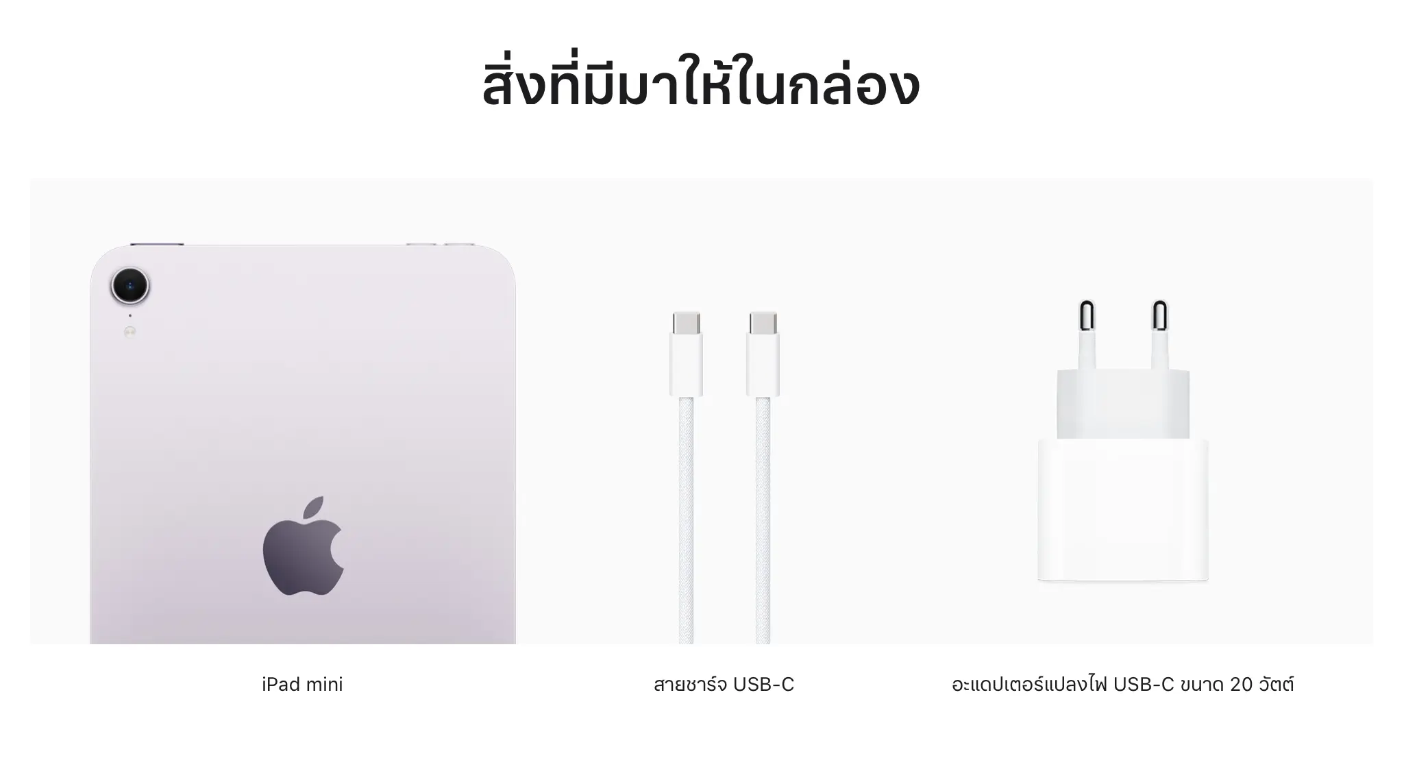 ดังนั้นหากซื้อ iPad mini 7 ที่ในกล่องแถมหัวชาร์จ USB-C 20W ก็เพียงพอต่อการใช้งานแล้ว ไม่จำเป็นต้องหาหัวชาร์จกำลังไฟสูง ๆ มาชาร์จ เพราะได้สูงสุดที่ 20W