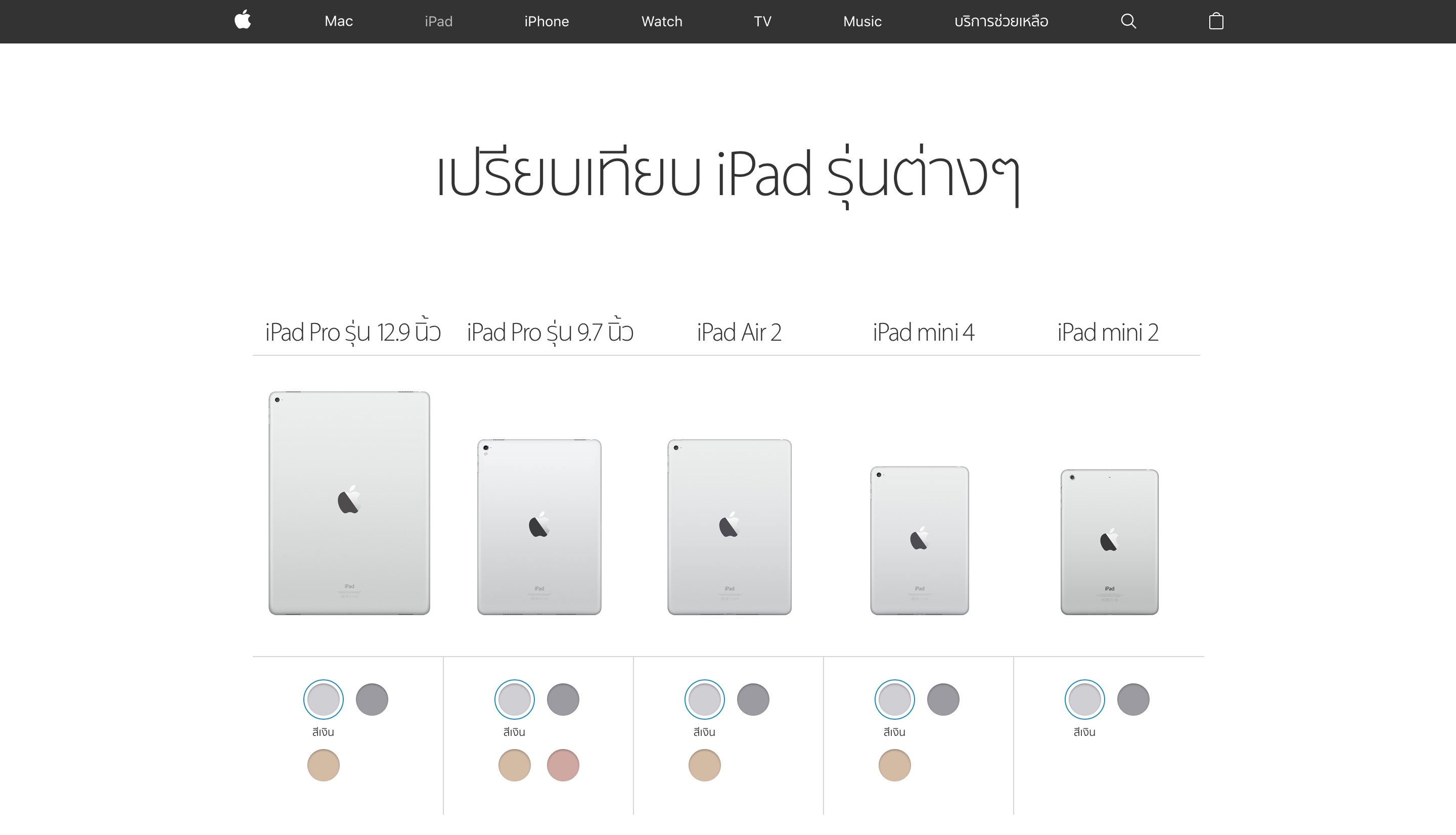 ก่อนอื่นเรามาดูรายการ iPad ของ Apple กันก่อนว่ามีรุ่นอะไรบ้าง (ปี 2016 – 2017)