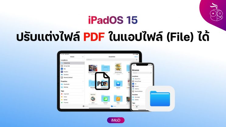 iPadOS 15 ที่เป็นเวอร์ชัน Public Beta อยู่ในตอนนี้ รองรับการแก้ไขหรือการปรับแต่งไฟล์เอกสาร PDF ที่เราสามารถหมุนหน้าเอกสารไปด้านซ้ายหรือด้านขวา แทรกหน้าว่าง แทรกไฟล์ที่อยู่ในแอปไฟล์ สแกนเอกสารเพิ่มเข้าไปในไฟล์ที่กำลังแก้ไข หรือจะลบเอกสารบางหน้าทิ้งก็ทำได้