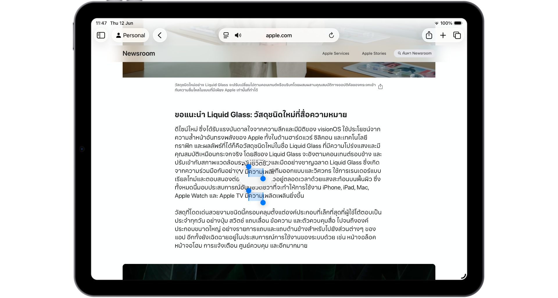 iPadOS 26 ดีไซน์ใหม่ โปร่งใสเหมือนหยดน้ำ ให้ความรู้สึกลื่นไหล สมูทมากขึ้น