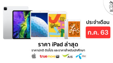 ข้อมูลนี้จะแสดงราคา iPad ที่วางจำหน่ายแต่ละรุ่น จาก Apple, TrueMove H, AIS และ Dtac ประจำเดือนเมษายน 2563 มีทั้งราคาปกติ ราคาโปรโมชันและราคาสำหรับนักศึกษา สามารถดูรายละเอียดเพิ่มเติมได้เลย