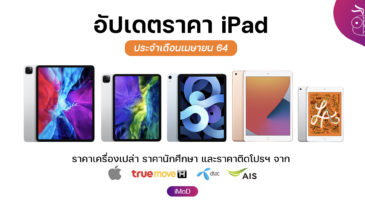 ข้อมูลนี้จะแสดงราคา iPad ที่วางจำหน่ายแต่ละรุ่น ในบทความนี้มีทั้งราคาปกติ ราคาโปรโมชันและราคาสำหรับนักศึกษา สามารถดูรายละเอียดเพิ่มเติมได้เลย