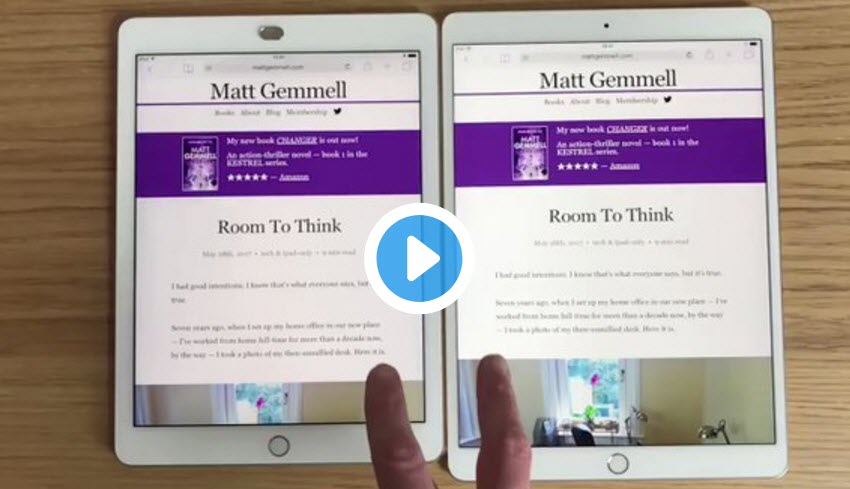 วิดีโอแบบ Slo-Motion ด้านล่างนี้ แสดงให้เห็นการทดสอบ Scroll หน้าจอ iPad Pro 10.5 นิ้ว (เครื่องขวา) กับ 9.7 นิ้ว (เครื่องซ้าย) ว่าเครื่องไหนไหลลื่นกว่ากัน แน่นอนว่า iPad Pro 10.5 นิ้วชนะเลิศ