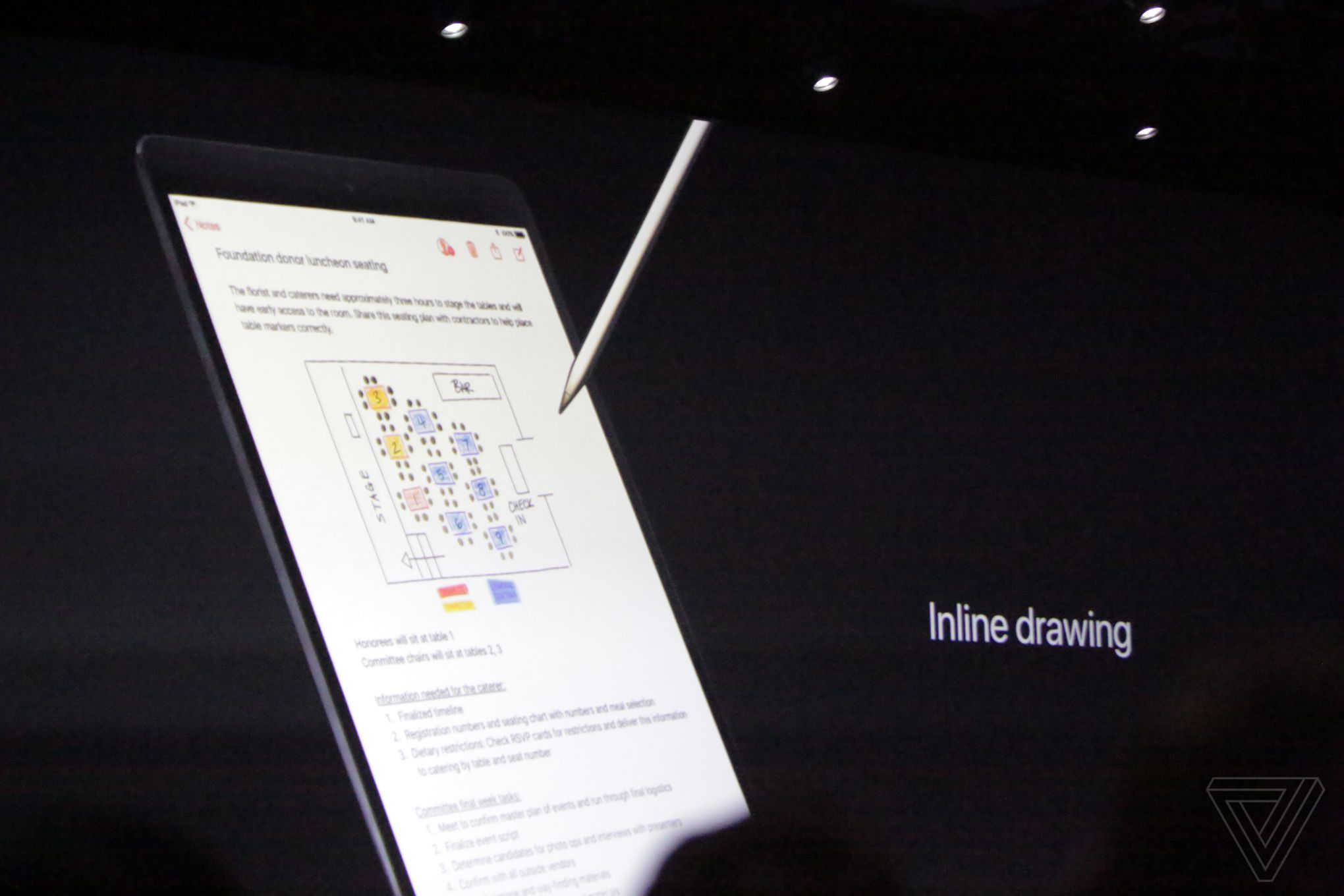 การใช้งานอุปกรณ์เสริมอย่าง Apple Pencil ก็ทำกับ iPad ได้มากขึ้น โดยใน iOS 11 มีการเพิ่มฟีเจอร์ Instant Note วิธีการใช้งานทำได้ง่ายๆ คือ ใช้ Apple Pencil แตะที่หน้าจอ 2 ครั้ง เขียน Inline Drawing ได้ทันที