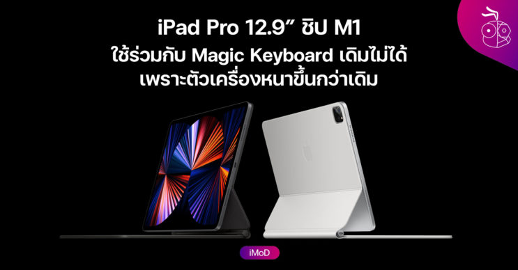 iGeneration รายงานข้อมูลว่า iPad Pro 12.9 นิ้วชิป M1 ตัวใหม่ ไม่สามารถใช้ร่วมกับ Magic Keyboard รุ่นเก่าได้ เนื่องจากตัวเครื่องที่หนาขึ้นกว่าเดิม