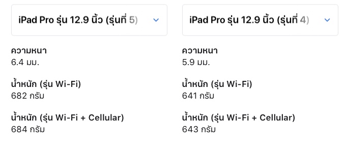 iPad Pro 12.9 นิ้วชิป M1 มีความหนาเพิ่มขึ้น 0.5 มม. เมื่อเทียบกับรุ่นก่อนหน้า ทำให้ iPad Pro 12.9 นิ้วชิป M1 ไม่สามารถใช้ร่วมกับ Magic Keyboard สำหรับ iPad Pro 12.9 นิ้วรุ่นก่อนหน้าได้ เพราะไม่สามารถพับเก็บได้นั่นเอง