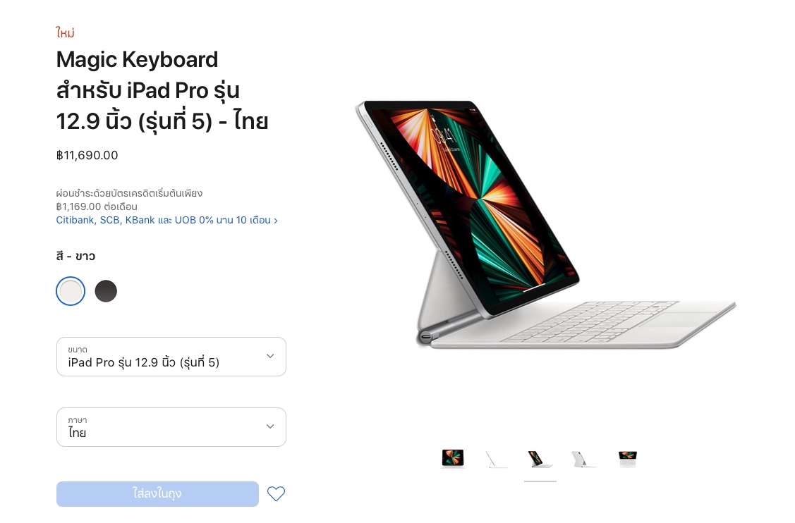 Apple เปิดตัว iPad Pro 12.9 นิ้วชิป M1ใหม่แต่ก็เปิดขาย Magic Keyboard สำหรับ iPad Pro 12.9 นิ้วชิป M1 โดยเฉพาะด้วย นั่นหมายความว่าหากซื้อ iPad Pro 12.9 นิ้วชิป M1 แล้วอยากได้ Magic Keyboard ก็ต้องซื้อใหม่ ไม่สามารถใช้ของเดิมที่มีอยู่แล้วได้นั่นเอง