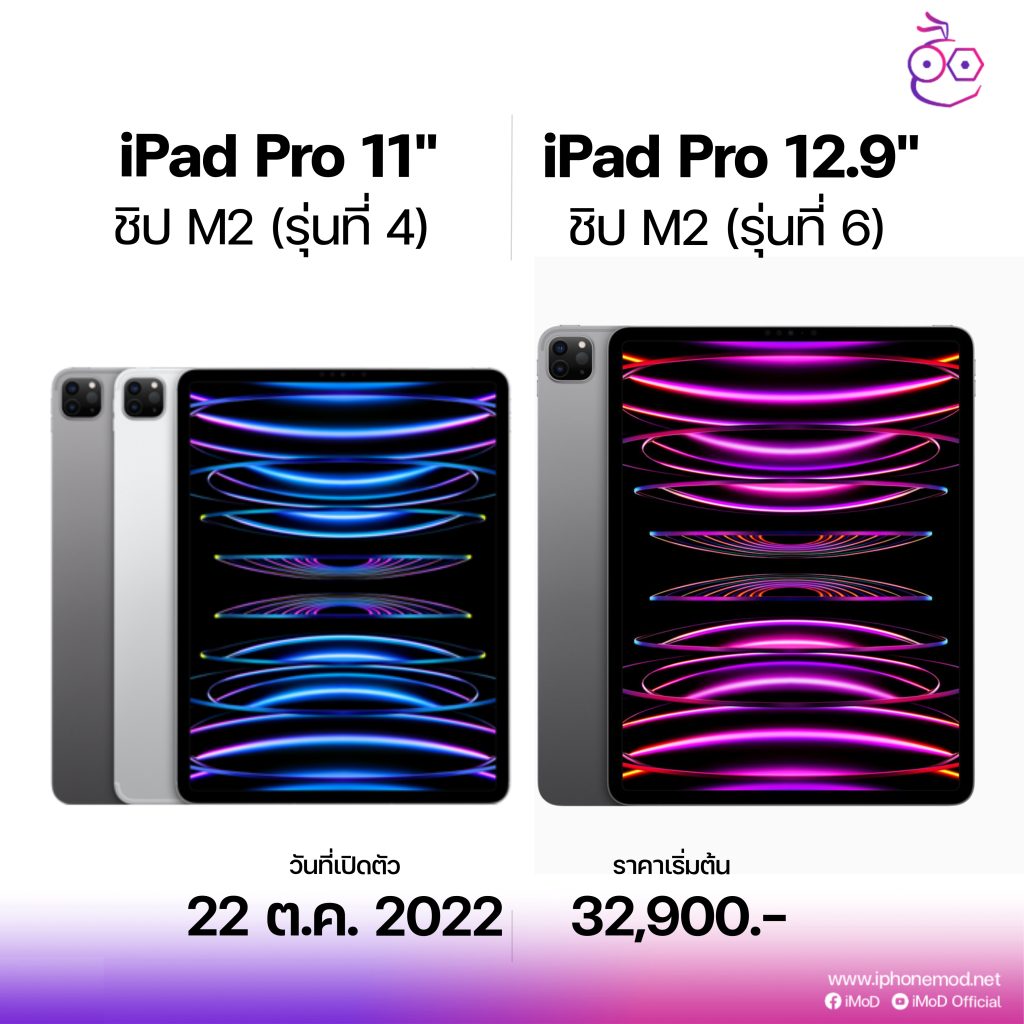 - iPad Pro 12.9″ (รุ่นที่ 6) ชิป M2 ราคาเริ่มต้น 44,900 บาท