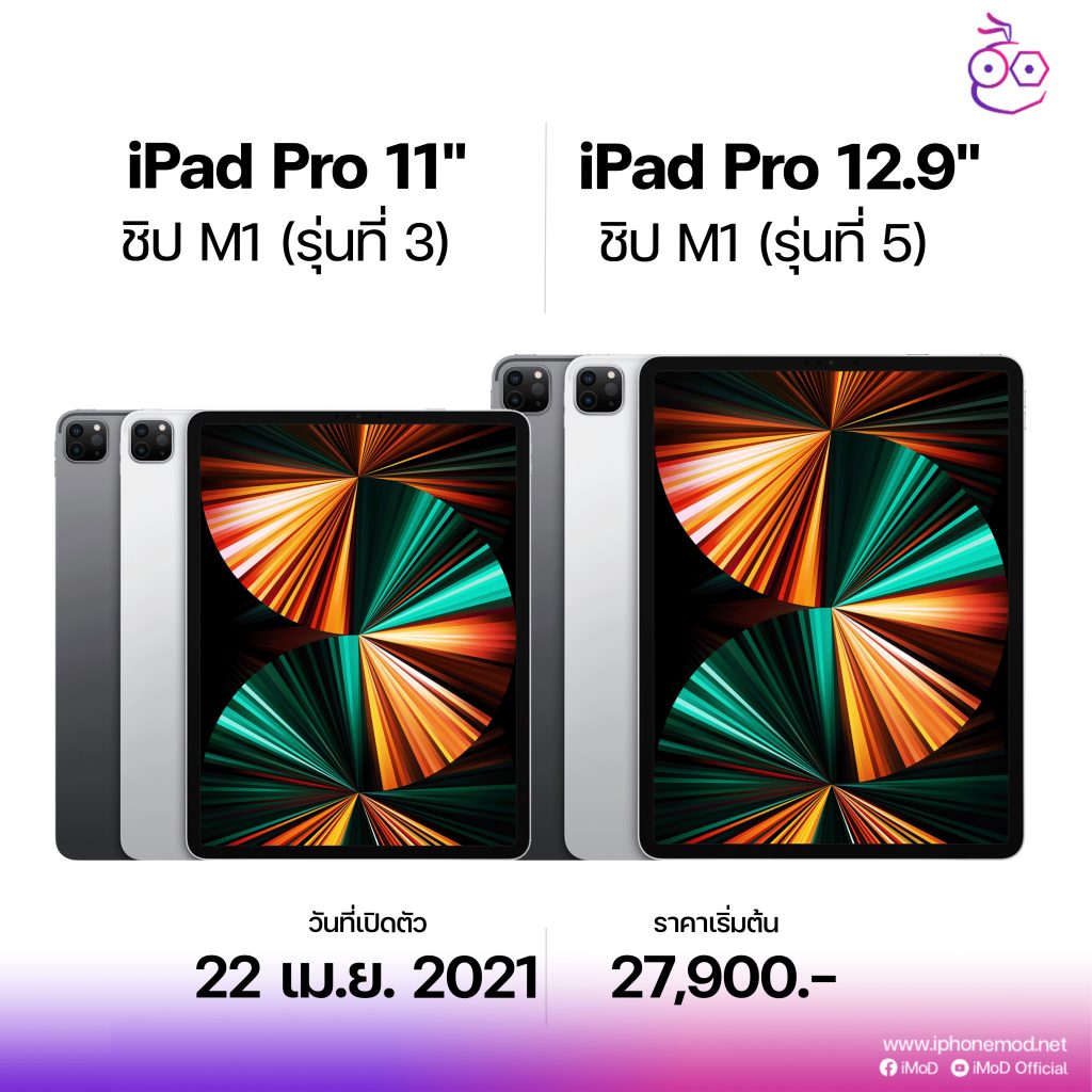 - iPad Pro 12.9″ (รุ่นที่ 5) ชิป M1 ราคาเริ่มต้น 37,900 บาท