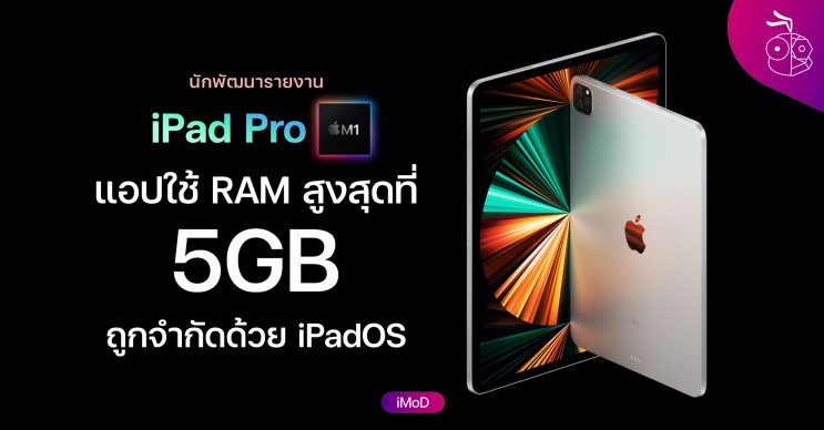 กพัฒนารายงานข้อมูลว่า การทำงานของแอปใน iPad Pro ชิป M1 จะถูกจำกัดการใช้ RAM สูงสุดที่ 5GB ถึงแม้จะมีให้ใช้ 8GB และ 16GB