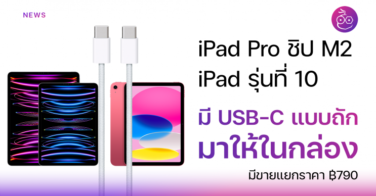 ซื้อ iPad Pro ชิป M2, iPad รุ่นที่ 10 จะมีสายชาร์จ USB-C แบบถักใส่มาให้ในกล่อง! โดยไม่ต้องซื้อแยก