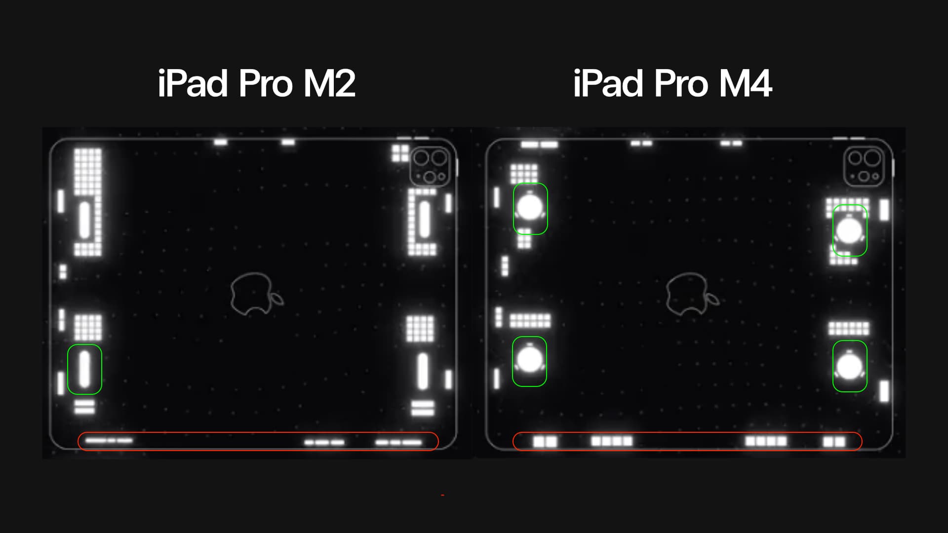 MKBHD ได้ใช้แผ่นกระดาษแม่เหล็ก (ทำหน้าที่เหมือนเครื่อง X-Ray) ลากไปบนบริเวณด้านหลังของ iPad เพื่อหาตำแหน่งที่กระดาษตอบสนองต่อแม่เหล็กภายในตัวเครื่อง พบว่ามีแม่เหล็กเรียงกันทั่วตัวเครื่องเป็นจุด ๆ  ตัว iPad Pro M4 มีจำนวนแม่เหล็กที่มากขึ้นและใหญ่ขึ้น แต่บริเวณด้านข้างจะใหญ่กว่าและมีรูปทรงเป็นลูกบาศก์มากกว่า