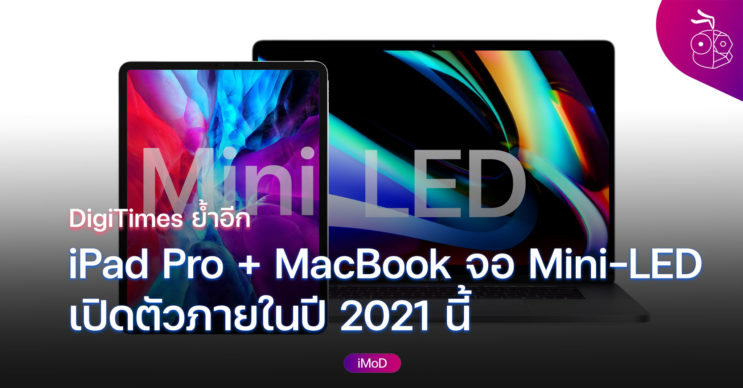 DigiTimes รายงานว่า Ennostar จะเริ่มผลิตจอ Mini-LED ใช้สำหรับ iPad Pro 12.9 นิ้วช่วงปลายไตรมาสแรกปี 2021 นี้ โดย iPad Pro, MacBook Pro จอ Mini-LED อาจเปิดตัวภายในปี 2021 นี้