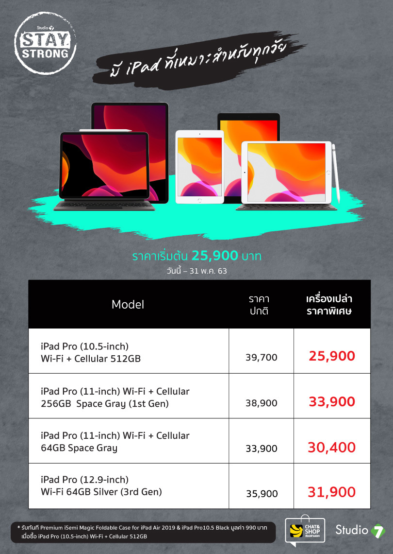รายละเอียดเพิ่มเติม > https://www.studio7thailand.com/promotions/ipad-sale-31may20/
