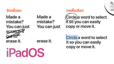 ใช้ Apple Pencil ขีดเพื่อลบ, วงเพื่อเลือกข้อความได้