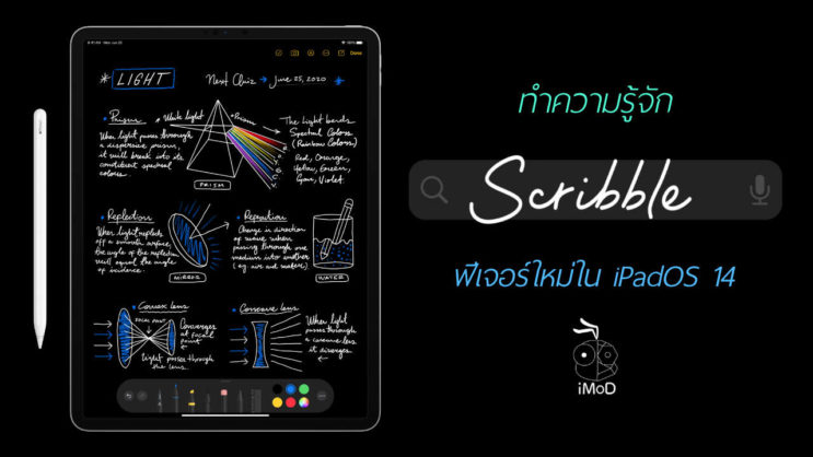 หนึ่งในไฮไลท์เด่นที่สำคัญของ iPadOS 14 ก็คือ การเพิ่มประสิทธิภาพให้กับ Apple Pencil ให้สามารถแปลงลายมือเป็นตัวพิมพ์โดยอัตโนมัติได้ โดย Apple จะเรียกฟีเจอร์นี้ว่า “Scribble”