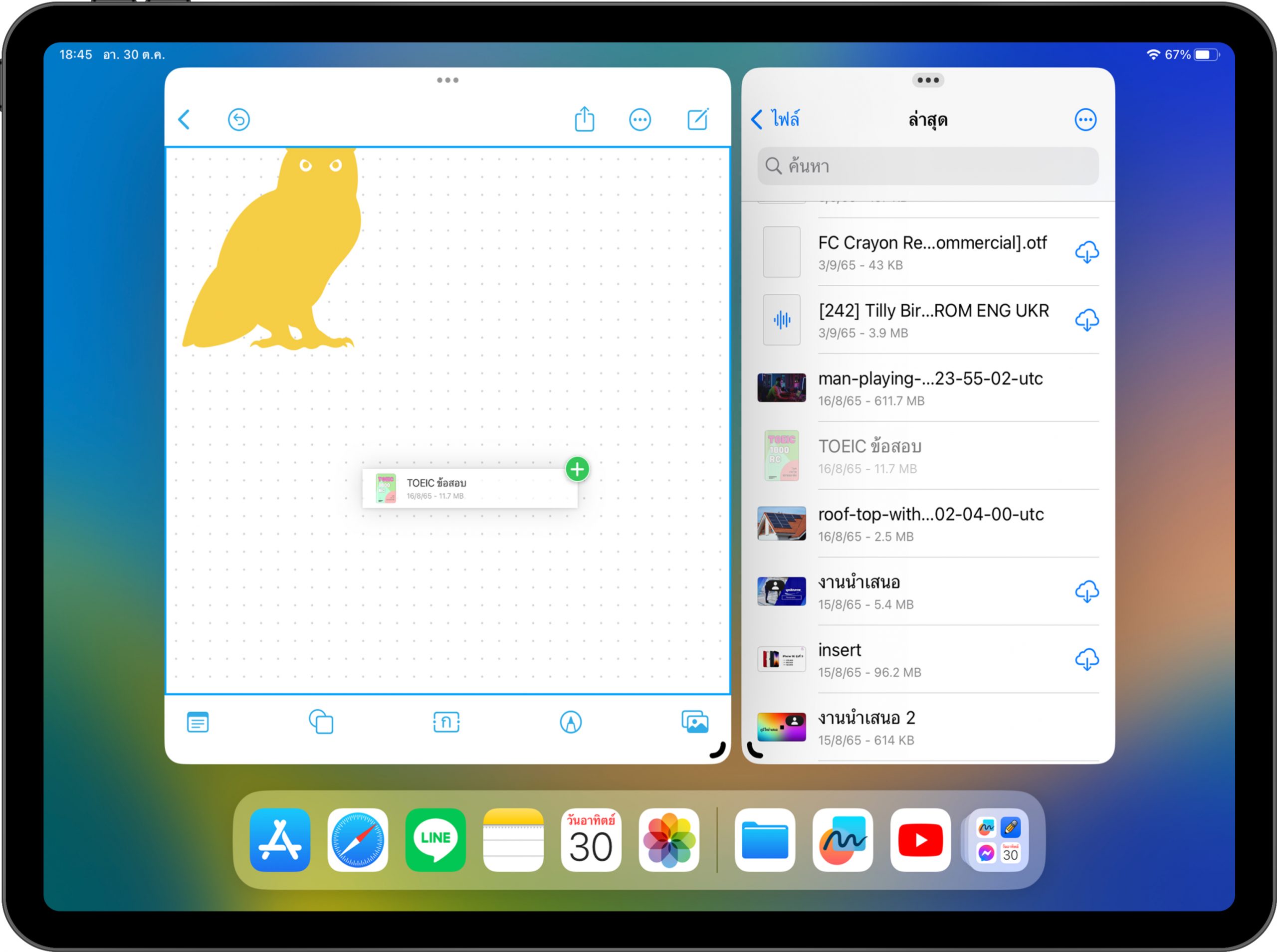 เมื่อใช้งานแอป Freeform ขณะที่เปิดใช้ฟีเจอร์ Stage Manager อยู่จะช่วยให้เราสามารถเปิดโปรเจกต์งานอื่น ๆ ควบคู่และทำไปพร้อม ๆ กันได้เลย รวมถึงการลากและวางไฟล์จากแอปอื่นก็ทำได้สะดวกมากขึ้น