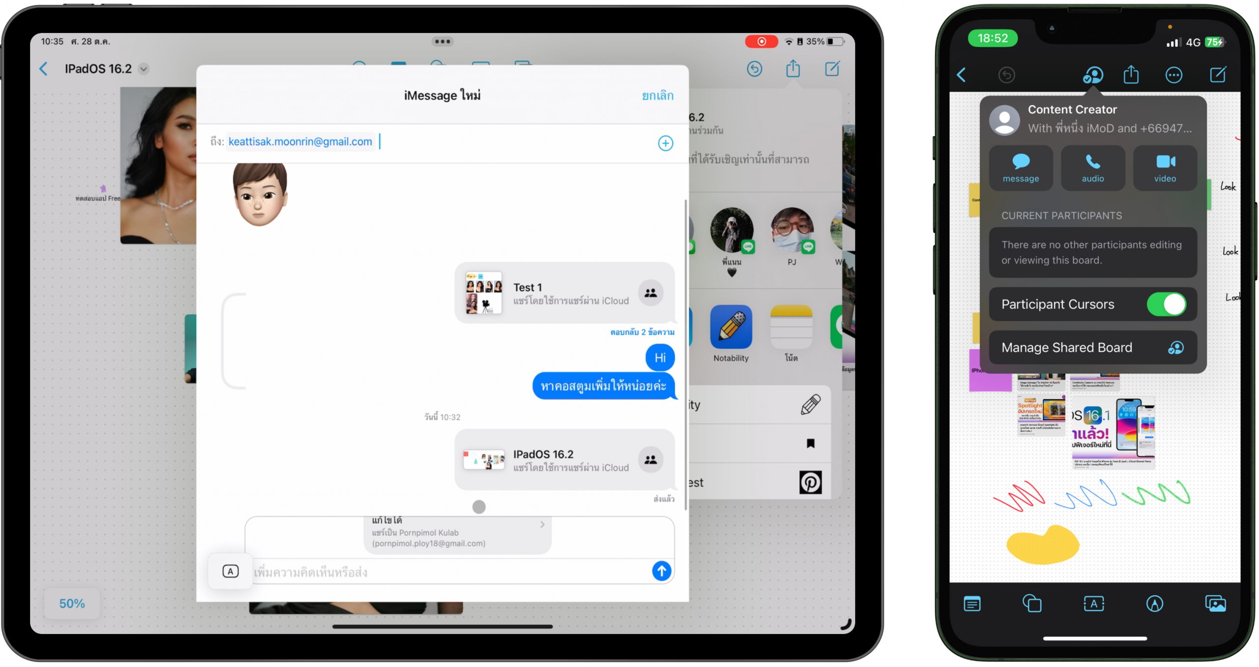 เราสามารถกดแชร์ลิงค์ให้คนในทีมเข้ามาร่วมทำงานได้เลยผ่านการแชร์ด้วยแอป Message หรือแอปอื่น ๆ ได้ และยังสามารถแชร์ไปยังแอป Notability, GoodNotes โดยตรงได้อีกด้วย คาดว่า Apple จะปล่อยอัปเดตเวอร์ชันถัดไปในเร็วๆ นี้