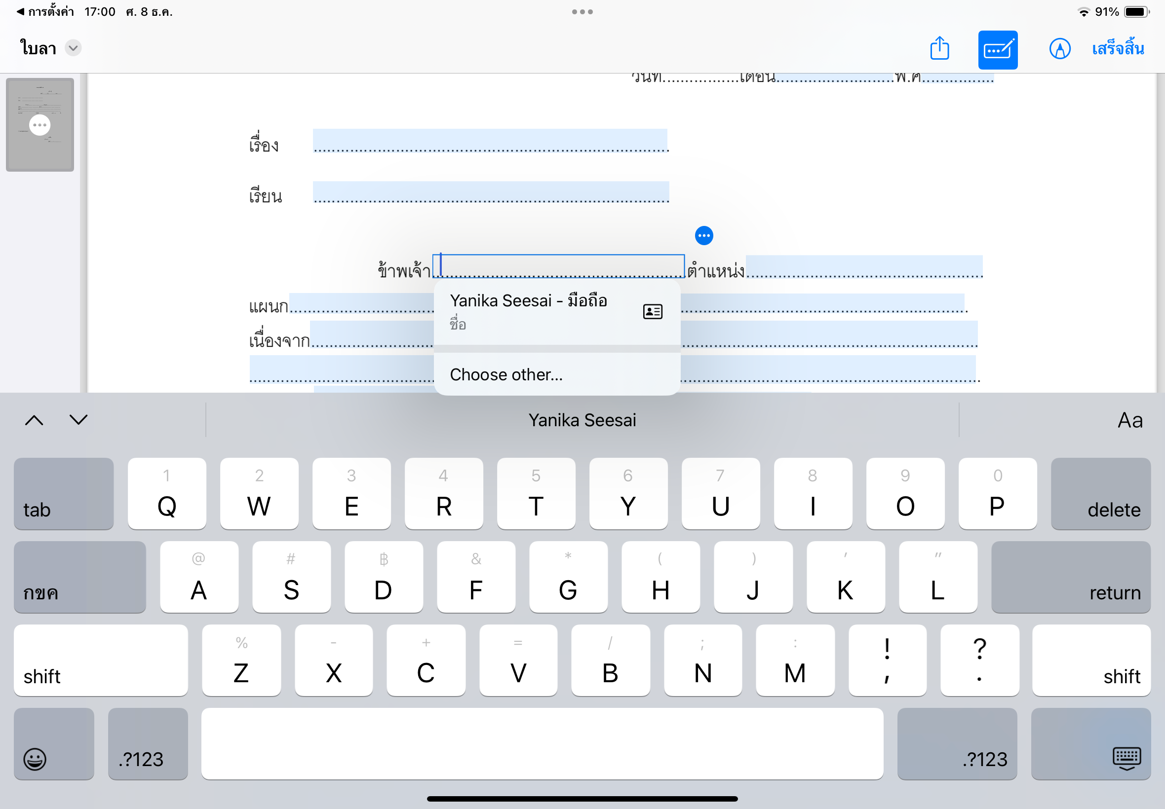ปรับปรุงฟีเจอร์ Auto Fill ใหม่ในไฟล์ PDF และแบบฟอร์มอื่น ๆ ช่วยให้สามารถกรอกข้อมูลในไฟล์ PDF ได้ง่ายขึ้น เช่น ชื่อและที่อยู่ จากรายชื่อผู้ติดต่อที่เพิ่มไว้