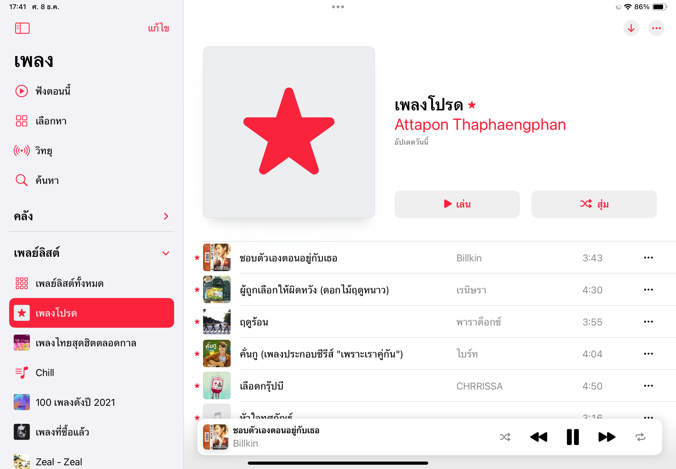 - ในแอป Apple Music ชอบเพลงไหน กดดาวไว้เลย! เพลงเหล่านั้นจะถูกรวบรวมไว้ในเพลย์ลิสต์ Favorite Songs (เพลงโปรด)