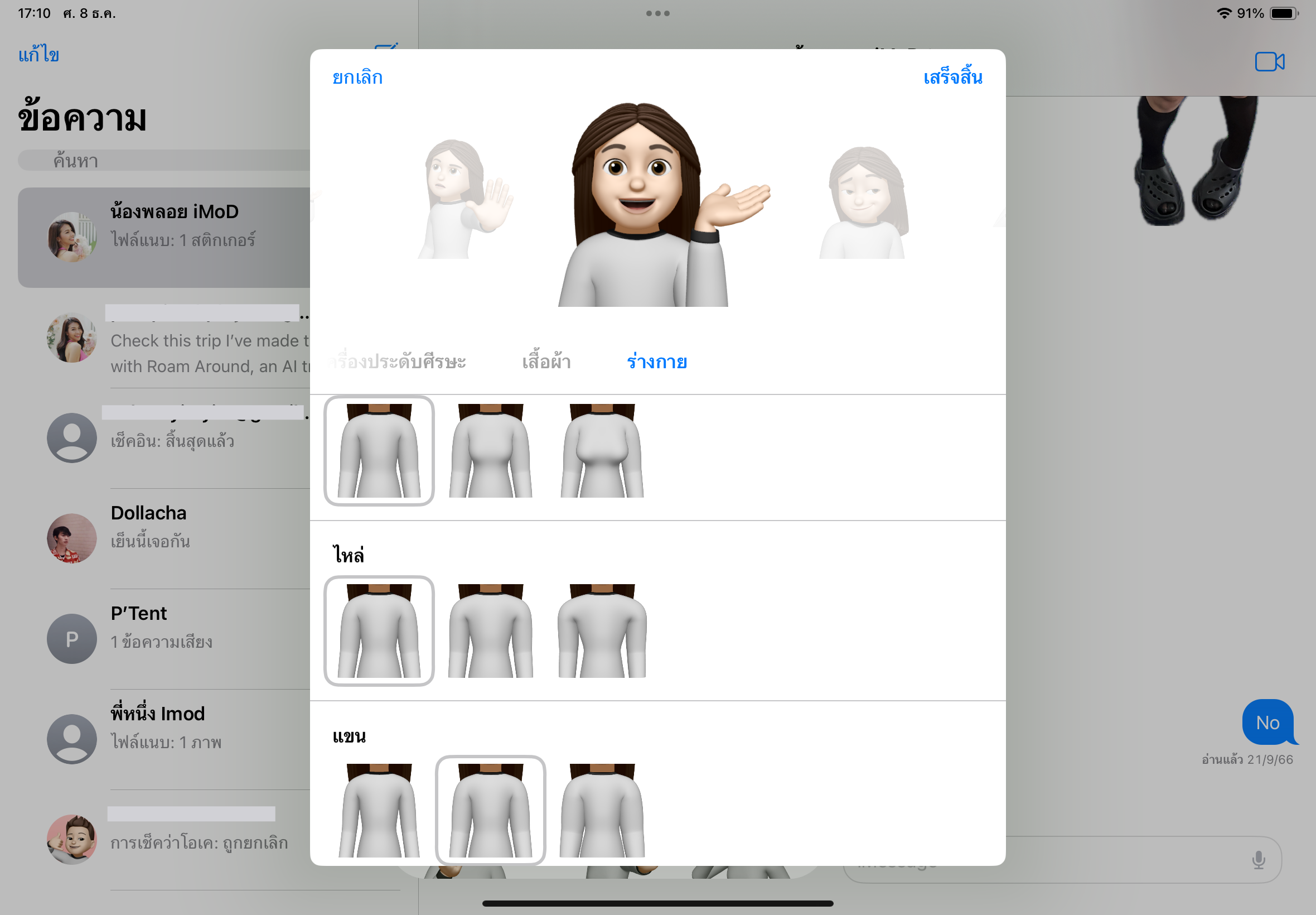 - ร่างกาย Memoji : เพิ่มลักษณะร่างกายของตัวละคร Memoji เพื่อให้เป็นตัวเรามากที่สุดได้ ไปที่ memoji > แตะจุดสามจุด > เลือกร่างกายตามต้องการได้เลย