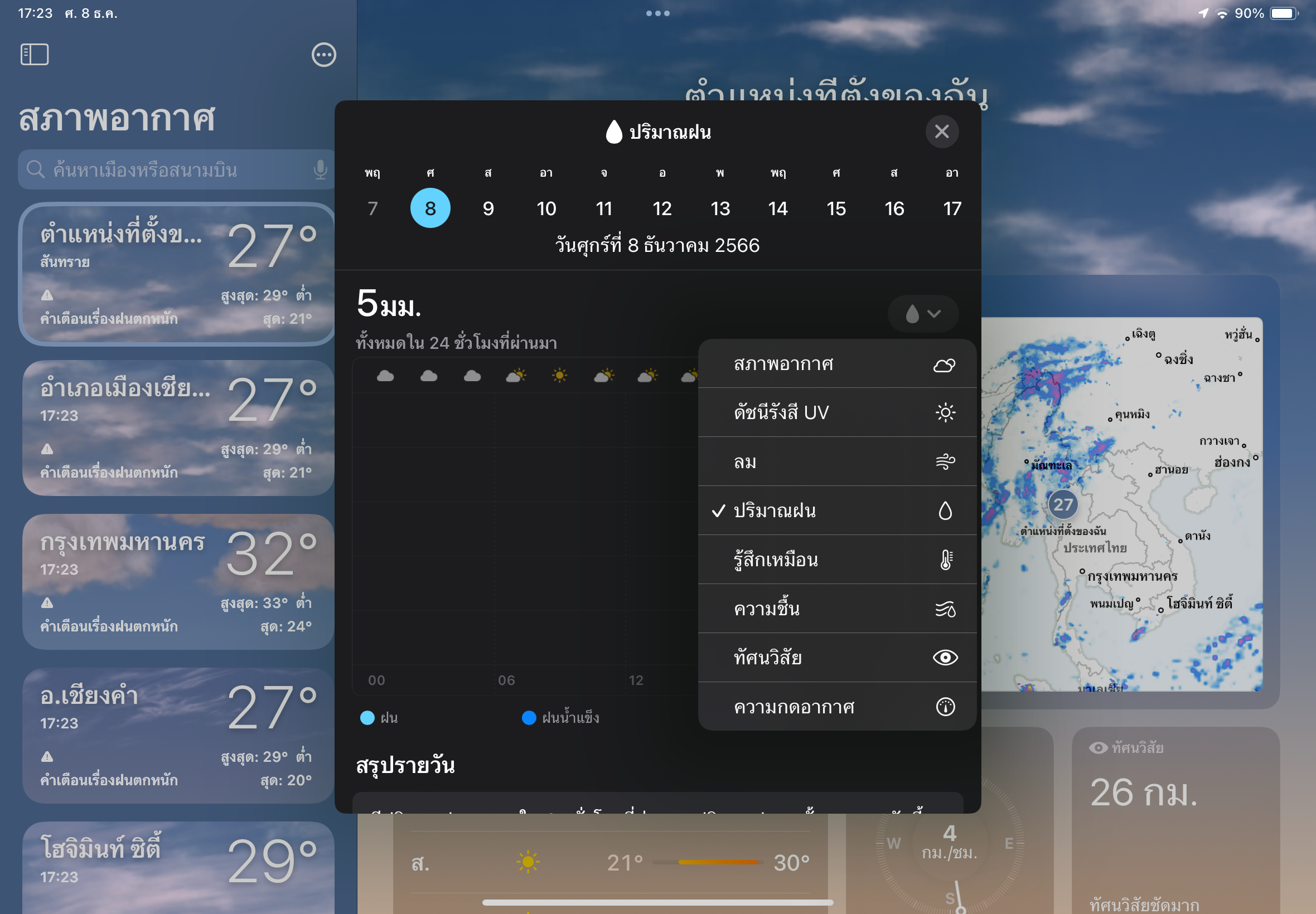 - ปริมาณน้ำฝนและหิมะ : สามารถดูปริมาณน้ำฝนและหิมะล่วงหน้าได้ 10 วัน