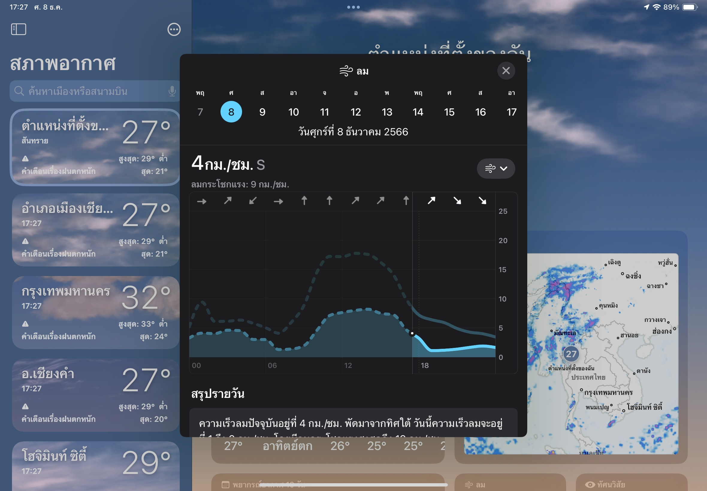 - ดูความเร็วลม : ดูความเร็วลมได้ละเอียดขึ้น ช่วยให้ประเมินรูปแบบลมได้รวดเร็ว เตรียมพร้อมสำหรับสภาพลมที่สามารถคาดการณ์ไว้ได้ล่วงหน้า 24 ชั่วโมง