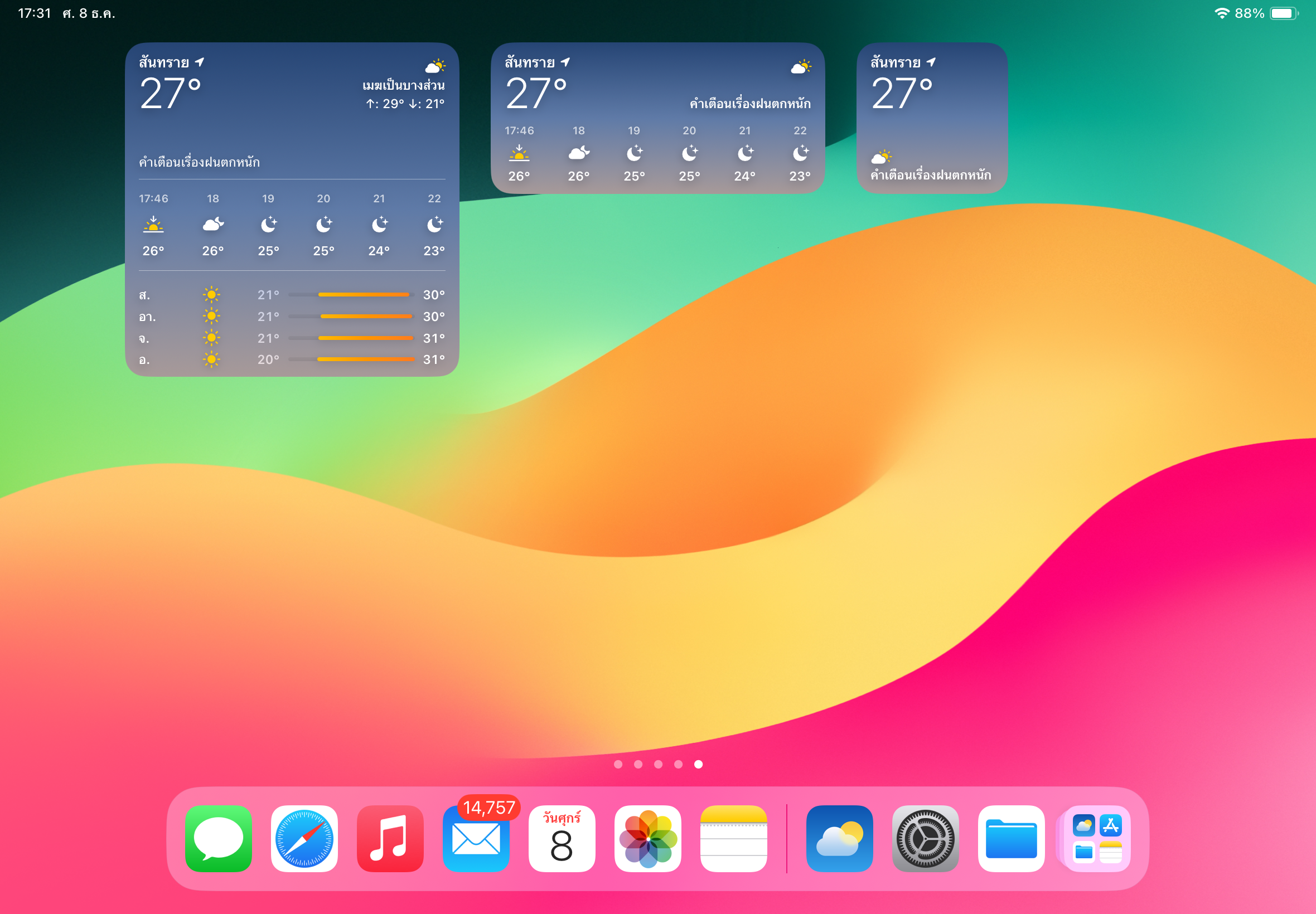 - วิดเจ็ตสภาพอากาศใหม่ :วิตเจ็ตสภาพอากาศใหม่ล่าสุด ดูข้อมูลสำคัญได้ครบถ้วน โดยไม่ต้องโหลดแอปนอกมาเพิ่ม