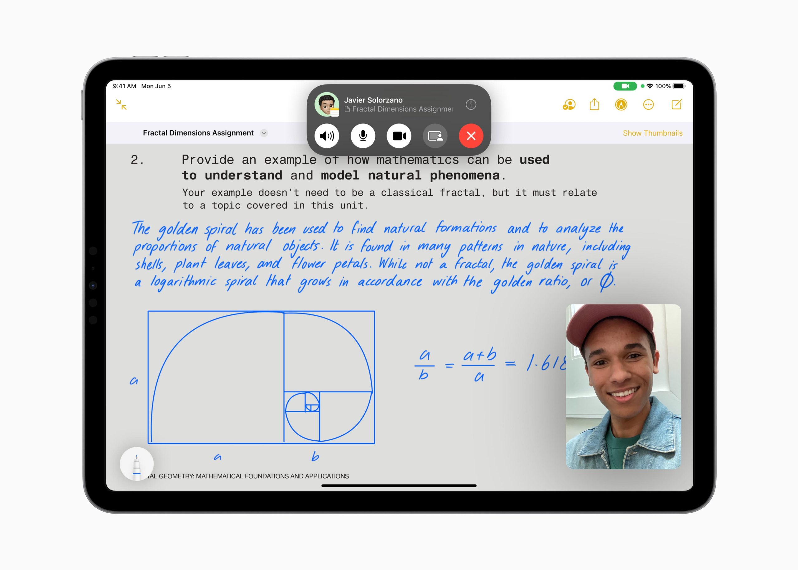 - การช่วยการเข้าถึง มีเครื่องมือใหม่ ๆ ที่ทำให้ iPad ใช้งานได้ง่ายขึ้นไปอีก อย่างคุณสมบัติการเข้าถึงการช่วยเหลือซึ่งเป็นอินเทอร์เฟซที่ปรับแต่งได้เพื่อช่วยให้ผู้ใช้ที่มีความบกพร่องด้านการรู้คิดมีความสะดวกและใช้ iPad ด้วยตนเองได้มากขึ้น คุณสมบัติเสียงพูดสดช่วยให้ผู้ใช้ที่ไม่สามารถสื่อสารผ่านการพูดมีตัวเลือกในการป้อนข้อความให้ตัวเครื่องออกเสียงแทนตัวเองได้เมื่อสื่อสารแบบพบหน้า อยู่ในสายโทรศัพท์ หรืออยู่ในสายโทร FaceTime คุณสมบัติเสียงส่วนตัวช่วยให้ผู้ใช้ที่มีความเสี่ยงในการสูญเสียความสามารถในการพูดมีตัวเลือกในการผลิตเสียงที่คล้ายกับเสียงของตัวเอง แล้วนำไปใช้ได้อย่างลื่นไหลด้วยคุณสมบัติเสียงพูดสด ส่วนในแว่นขยายก็มีคุณสมบัติชี้และอ่านออกเสียง ซึ่งช่วยให้ผู้ใช้ที่ตาบอดหรือมองเห็นเลือนรางสามารถใช้งานเครื่องใช้ไฟฟ้าหรือวัตถุที่จับต้องได้อื่นๆ ซึ่งมีป้ายข้อความขนาดเล็ก