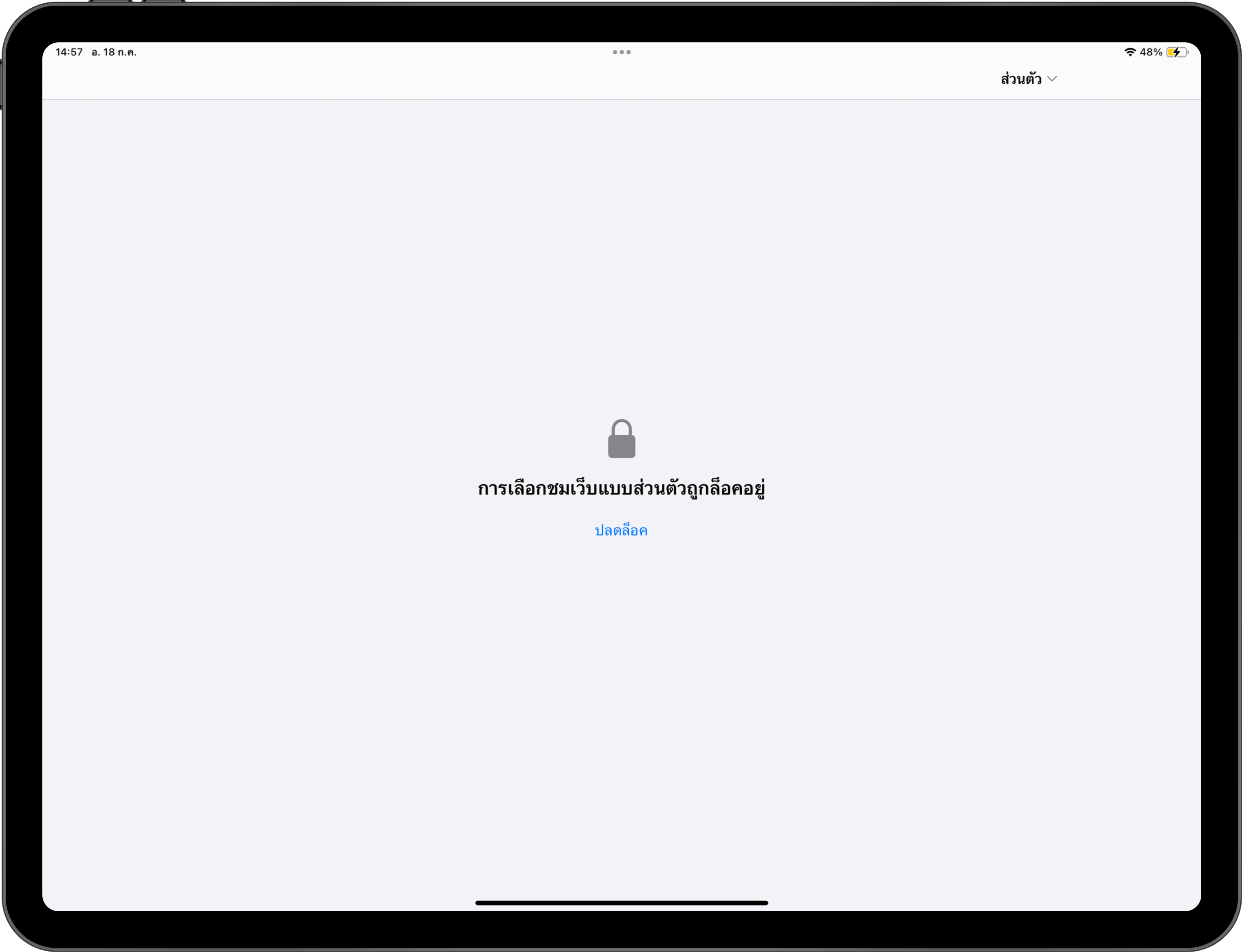 อีกหนึ่งความเจ๋งของการอัปเดต Safari ใน iPadOS 17 ก็คือเวลาที่เราใช้งานแถบส่วนตัว แล้วกดปิดแอปไป เมื่อกลับเข้ามาใช้งานใหม่ก็จะต้องทำการยืนยันตัวตนใหม่ทุกครั้ง ถือเป็นการเพิ่มความเป็นส่วนตัวสำหรับการค้นหาใน Safari มากขึ้น
