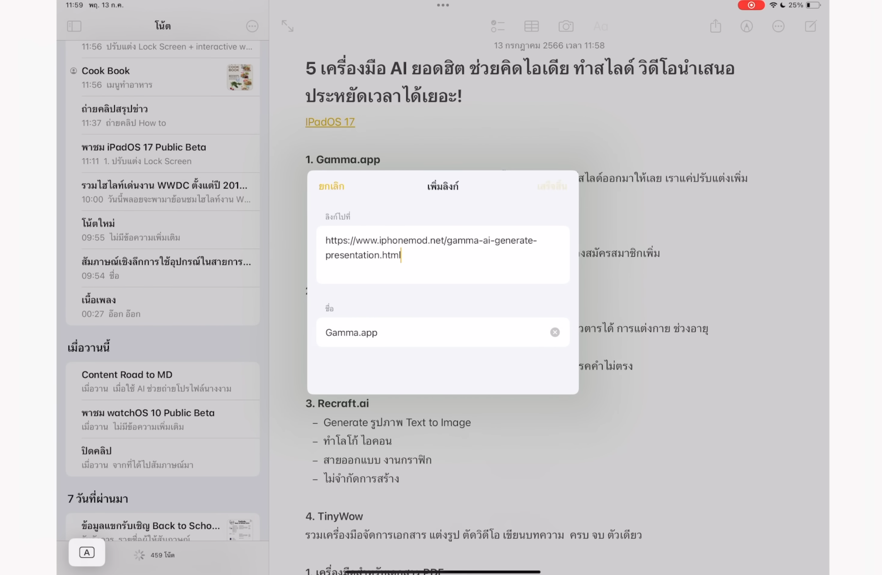 แอปโน้ตอัปเดตใหม่ สามารถเพิ่มลิงก์หรือแปะลิงก์บนตัวหนังสือแล้วลิงก์ไปยังโน้ตอื่น หรือลิงก์ไปยัง URL ใน Safari ก็สามารถทำได้