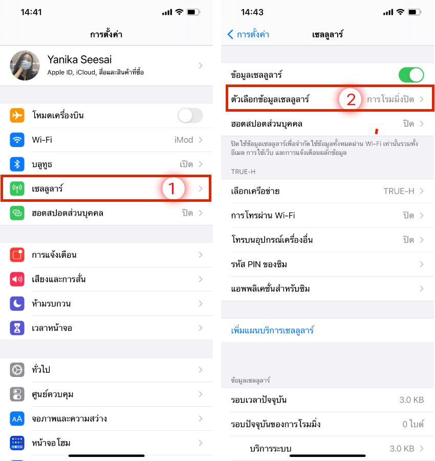การตั้งค่า (Setting) > เซลลูลาร์ (Cellular) > ตัวเลือกข้อมูลเซลลูลาร์ (Cellular Data Options)