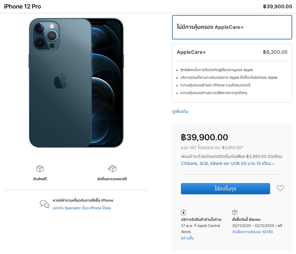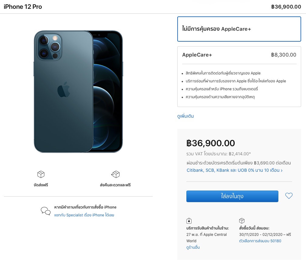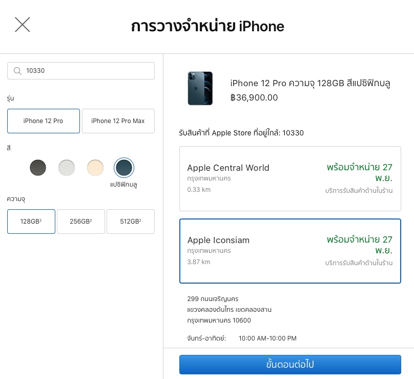 ลูกค้าสามารถเลือกรับได้ที่ Apple Central World, Apple Iconsiam ในวันที่ 27 พ.ย. 63 ซึ่งเป็นวันแรกของการวางขาย