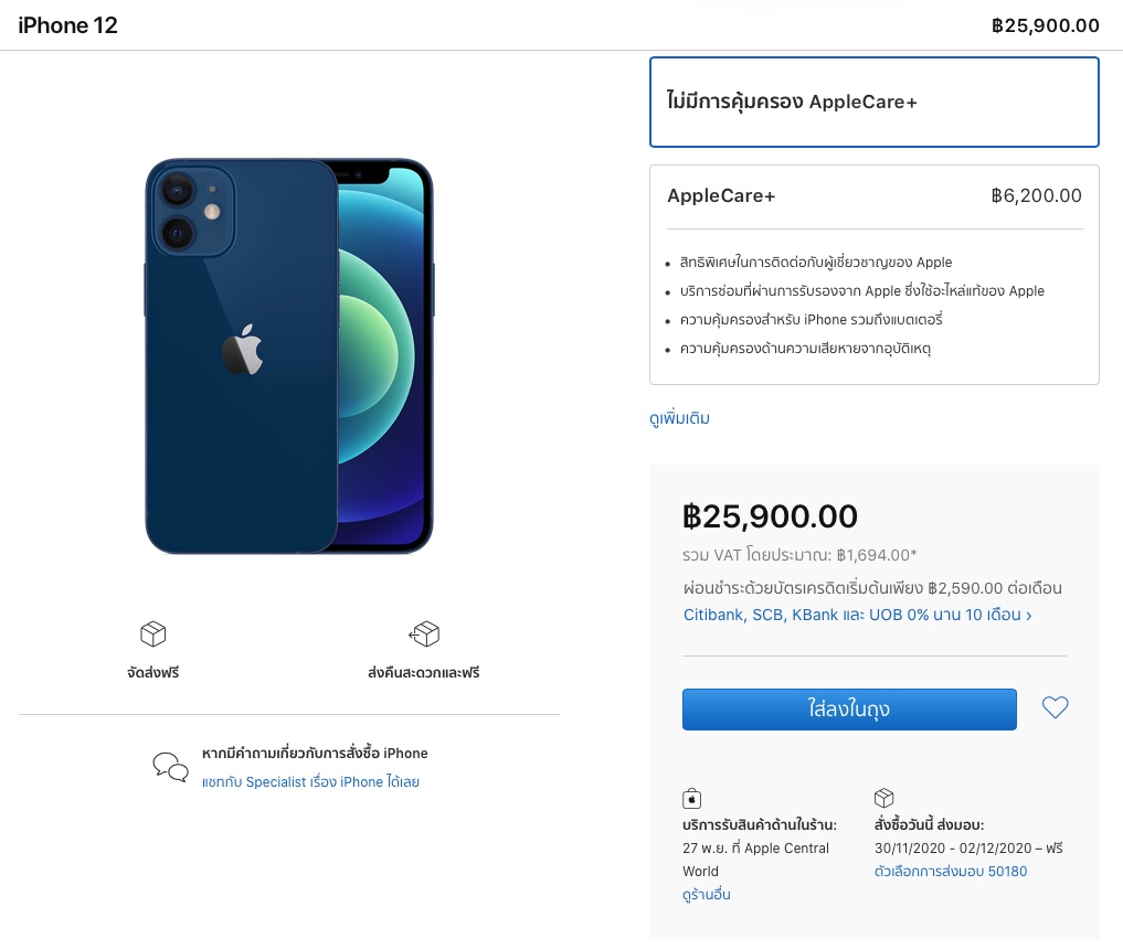 🛒 สั่งซื้อ iPhone 12, iPhone 12 mini >> คลิกที่นี่