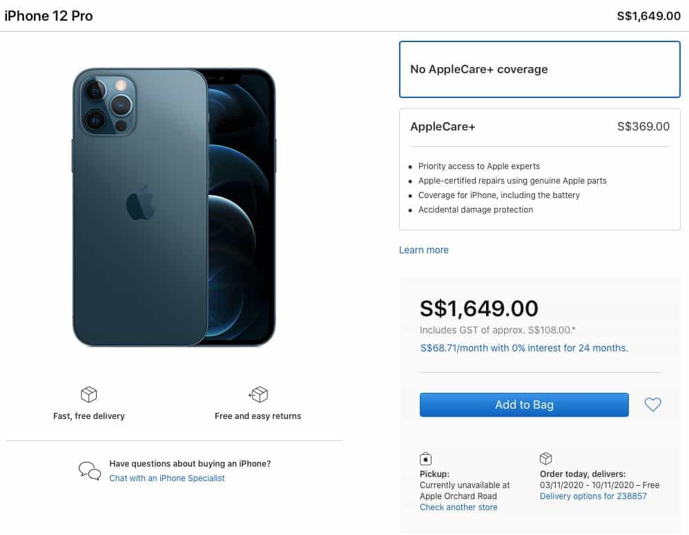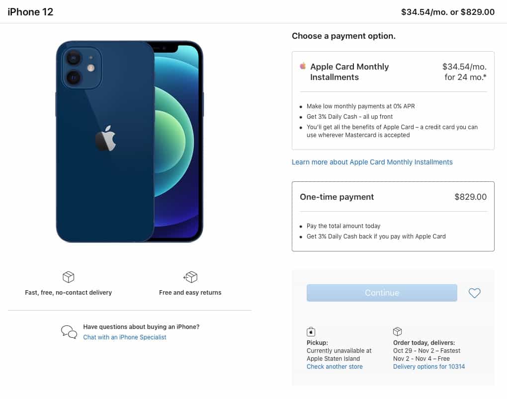 18 ต.ค. 2020, เมื่อเข้าไปดูที่ Apple Store ออนไลน์ในสหรัฐ พบว่า สินค้ายังถูกกำหนดส่งมอบอยู่ช่วง ต้นเดือน – กลางเดือน พ.ย.