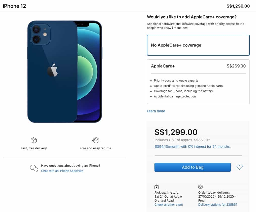 16 ต.ค. 2020, Apple ได้เปิดให้ลูกค้าสั่งซื้อ iPhone 12, iPhone 12 Pro ผ่าน Apple Store ออนไลน์ โดยกำหนดส่งมอบสินค้าชุดแรกจะอยู่ในช่วงวันที่ 23 ต.ค.