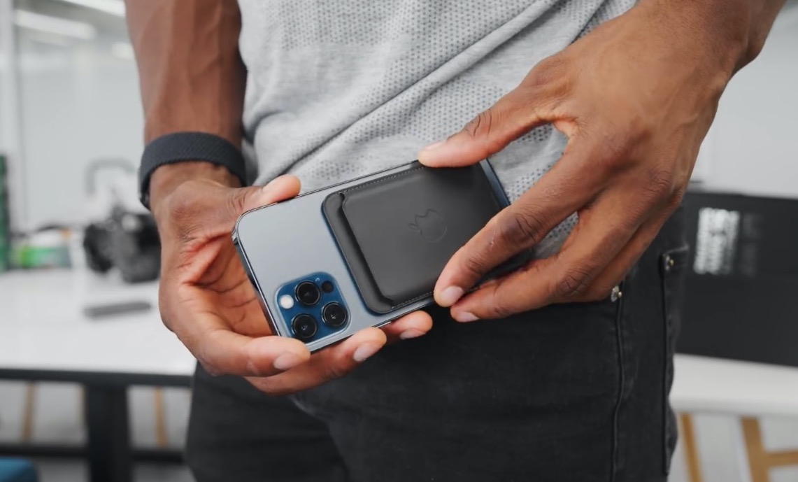 ในวิดีโอจะเห็นได้ว่า MKBHD ได้นำ กระเป๋าสตางค์แบบ MagSafe ติดเข้าไปที่ด้านหลังของ iPhone 12 โดยยึดติดกันผ่านแม่เหล็ก แต่การยึดติดกันนั้นไม่ค่อยแน่นหนาสักเท่าไหร่