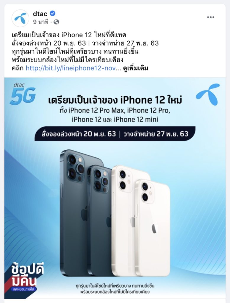 Dtac เปิดให้สั่งซื้อ iPhone 12 mini, iPhone 12, iPhone 12 Pro และ iPhone 12 Pro Max ล่วงหน้าในวันที่ 20 พฤศจิกายน 2563 นี้