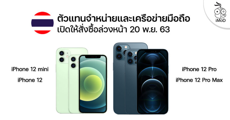 ตัวแทนจำหน่าย, เครือข่ายมือถือในไทยต่างโปรยประกาศเตรียมเปิดให้สั่งซื้อ iPhone 12 mini, iPhone 12, iPhone 12 Pro, iPhone 12 Pro Max ในวันที่ 20 พฤศจิศกายน 2563 นี้