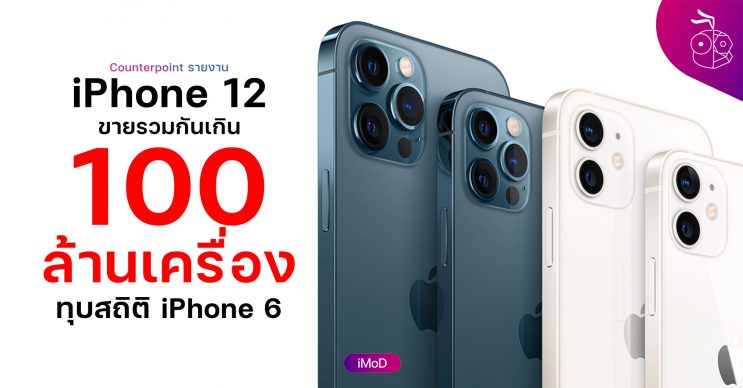 Counterpoint Research รายงานข้อมูลว่า iPhone 12 ซีรีส์ขายรวมกันเกิน 100 ล้านเครื่อง ขายได้มากกว่า iPhone 6 ที่เคยทำสถิติขายได้มากสุด
