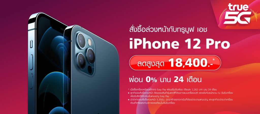 TrueMove H ได้เปิดสั่งซื้อ iPhone 12 mini, iPhone 12, iPhone 12 Pro และ iPhone 12 Pro Max ล่วงหน้าที่มาพร้อมกับโปรโมชันและสิทธิพิเศษมากมาย สิ่งที่น่าสนใจในการจอง iPhone 12 กับทรูมูฟเอชครั้งนี้ก็คือ ส่วนลดค่าเครื่องพร้อมใช้งานแพ็กเกจ True 5G ที่ iPhone 12 ทุกรุ่นรองรับ