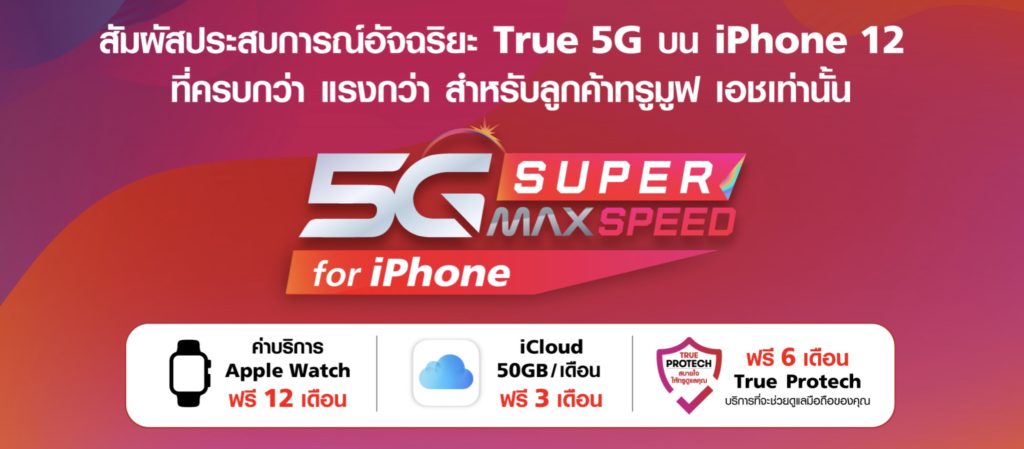 iPhone 12 ทุกรุ่นรองรับสัญญาณ 5G ซึ่ง TrueMove H ก็ได้ปล่อยสัญญาณ 5G ที่ครอบคลุมถึง 77 จังหวัดทั่วประเทศไทย ตอนนี้เริ่มต้นที่ตามหัวเมืองก่อนซึ่งเป็นจุดที่มีประชากรหนาแน่นและในอนาคตจะขยายจุดปล่อยสัญญาณเพิ่มอีก ไม่ว่าจะอยู่ที่ไหนเราก็ใช้สัญญาณ 5G ได้