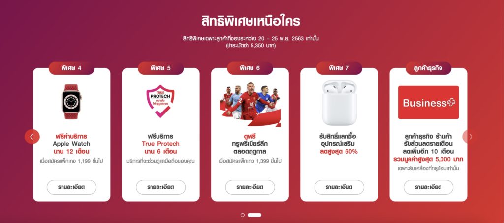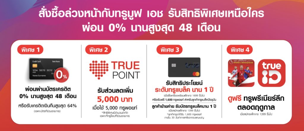 ลูกค้าทรูที่สะสมคะแนนทรูพอยท์ (True Point) ได้ครบ 5,000 คะแนน ก็สามารถนำมาแลกเป็นส่วนลดได้เต็ม ๆ 5,000 บาท มีคะแนนทรูพอยท์ไม่เสียเปล่า ช่วยลดค่าเครื่องได้เยอะ ใครมีทรูพอยท์ถือว่าคุ้มสุด ๆ