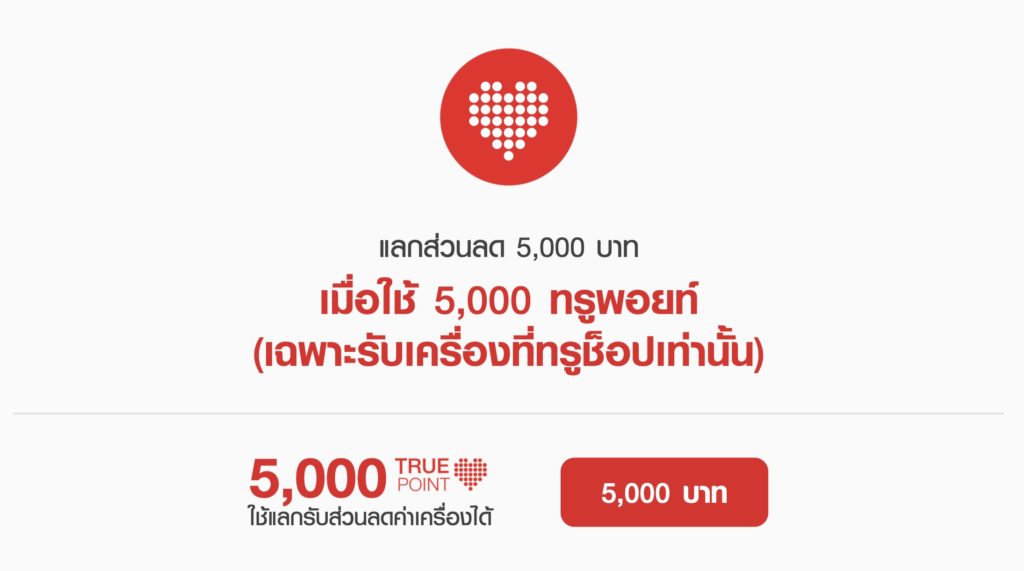 4. ทรูพอยท์ 5,000 คะแนน แลกเป็นส่วนลด 5,000 บาท